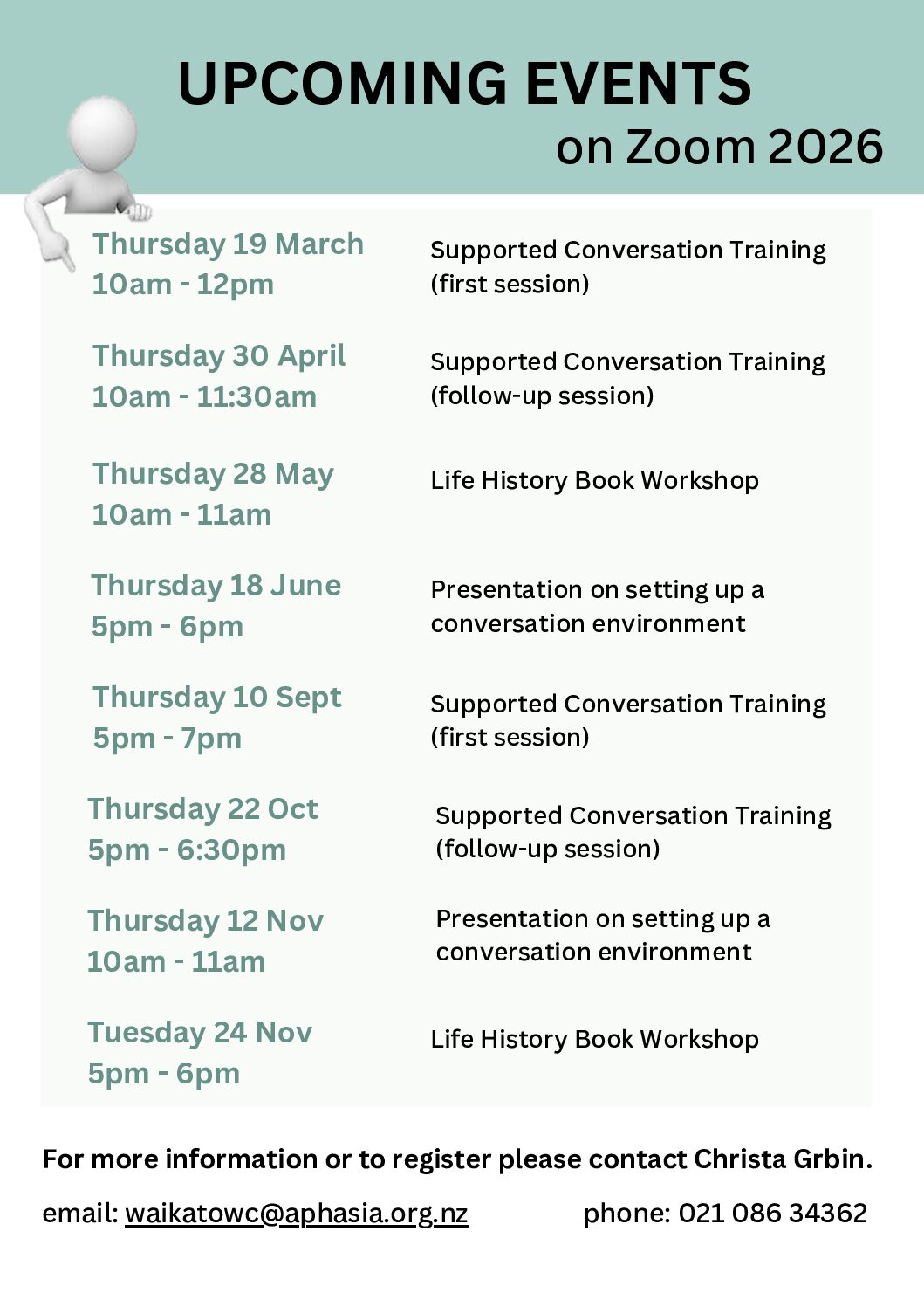 Our aim is to assist people with aphasia, their families and friends, extended whānau, and the wider community to communicate effectively and reduce the barriers faced by people with aphasia.