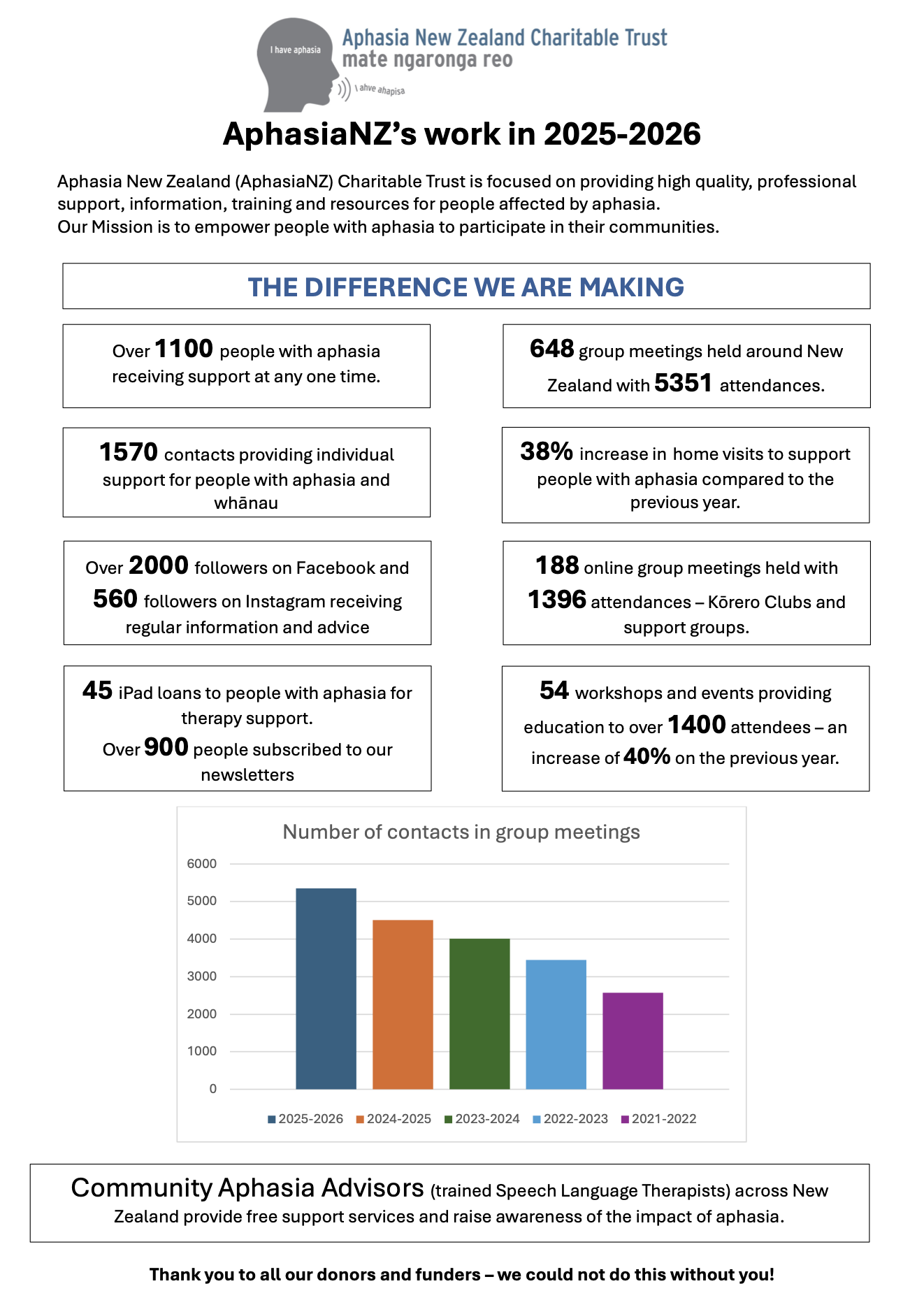 Donations help to fund our services, programmes and resources for people with aphasia. AphasiaNZ receives no government funding.