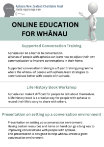 Our workshops and education events for whānau and friends are designed to help you have more enjoyable conversations with your loved one/friend who has aphasia. Three options are being held this year.